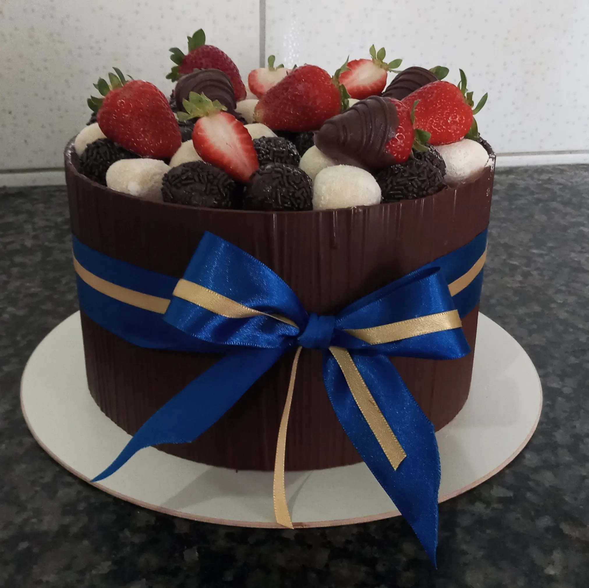 Cobertura com Casquinha de Chocolate e uma fita presenteável